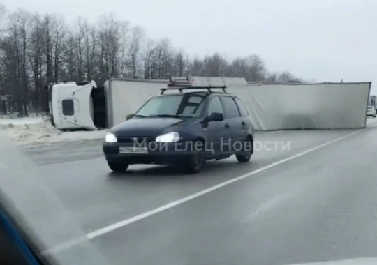 Из-за перевернувшегося грузовика образовался крупный затор под Ельцом