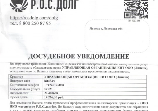 Липчанка получила уведомление о коммунальном долге в 15 тысяч рублей. Оказалось, что это техническая ошибка.