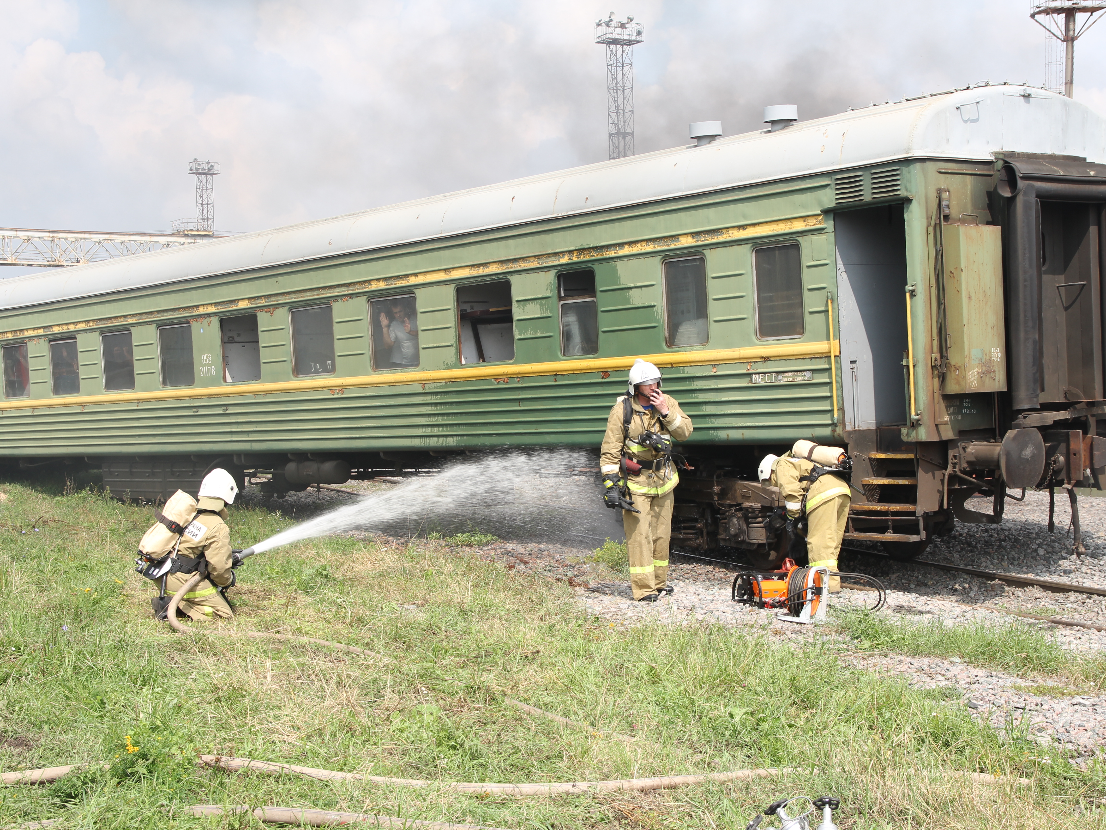 По легенде учений с рельсов сошли три вагона, но свои навыки спасатели и пожарные отрабатывали лишь на одном, колеса которого вылетели за пределы железной дороги. В вагоне, по сценарию, остались около 50 человек. К тому же, вагон стал для них настоящей западней из-за внезапно возникшего пожара.