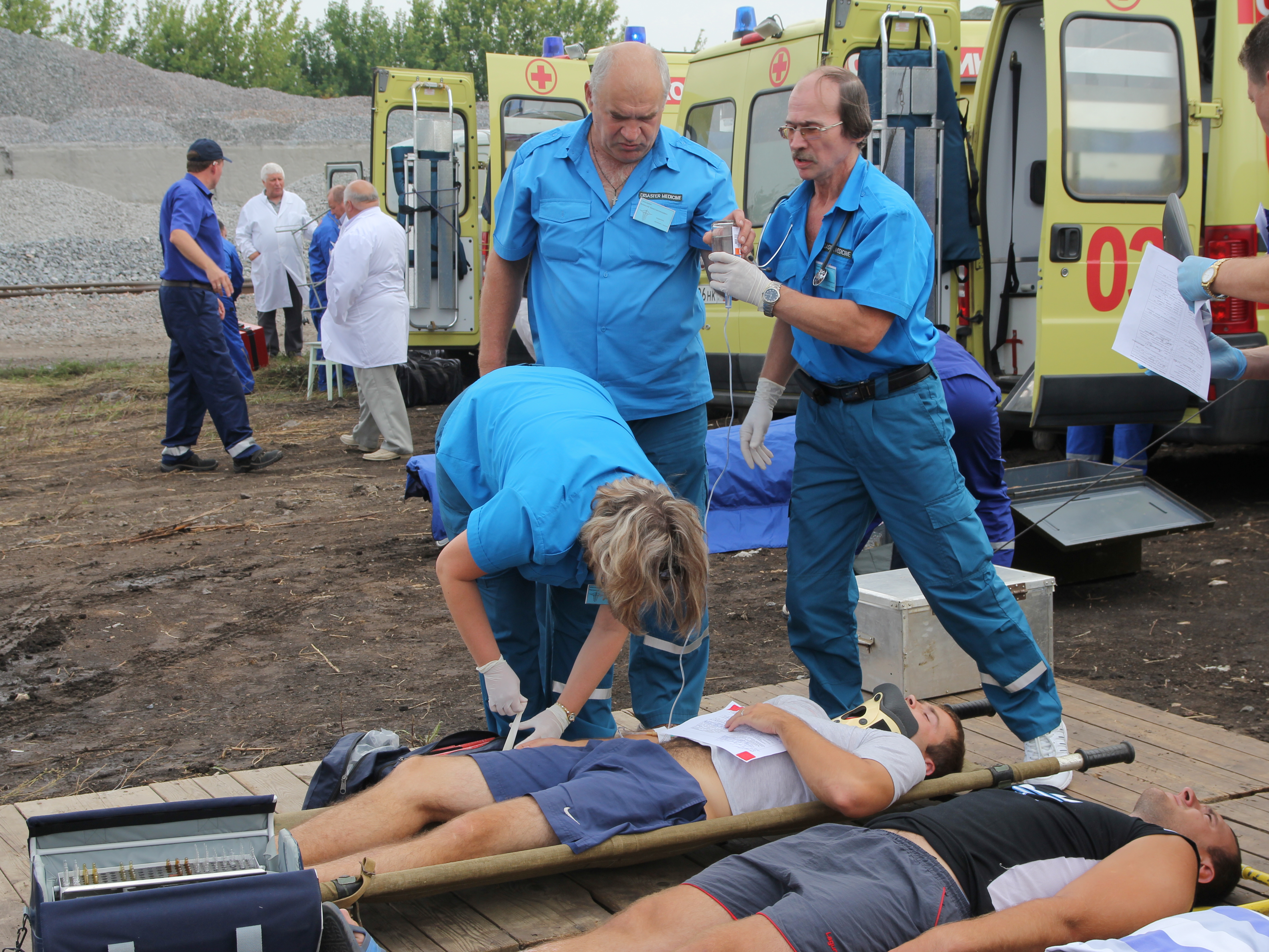 Среди пассажиров поезда были те, кто пострадал незначительно. Их обследовали обычные врачи. Голодных накормила передвижная кухня, способная работать в течение трех дней. После приема пищи и психологической разгрузки условных пассажиров поезда переместили в палатку для отдыха.