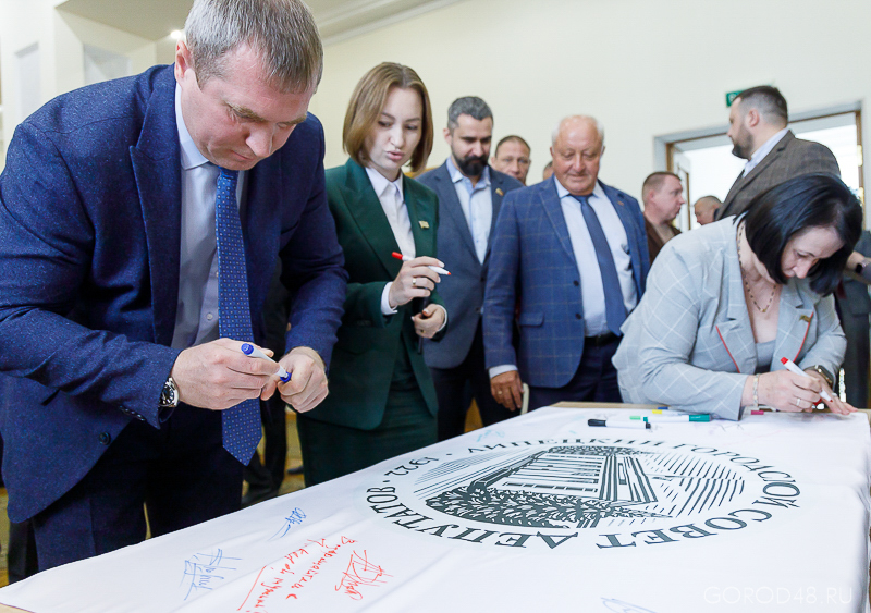 По завершении первой сессии депутаты подписали и оставили тёплые пожелания на флаге Липецкого городского Совета, который будет передан в зону СВО — бойцам 387-го мотострелкового полка ВДВ.