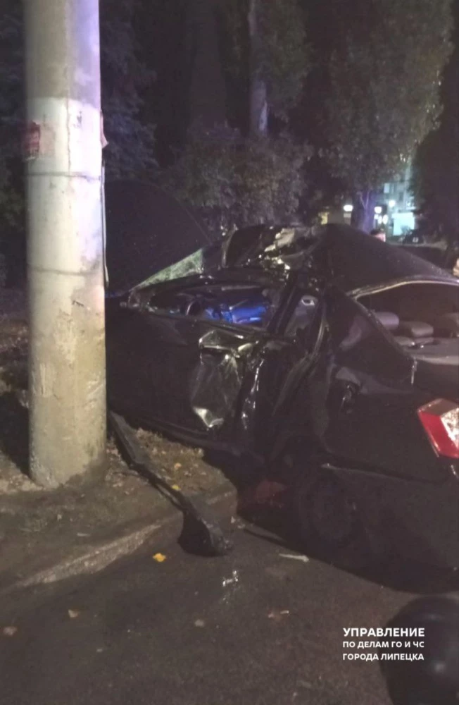 Ночью на Космонавтов врезался в столб автомобиль: пострадали два человека