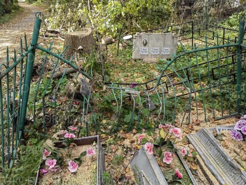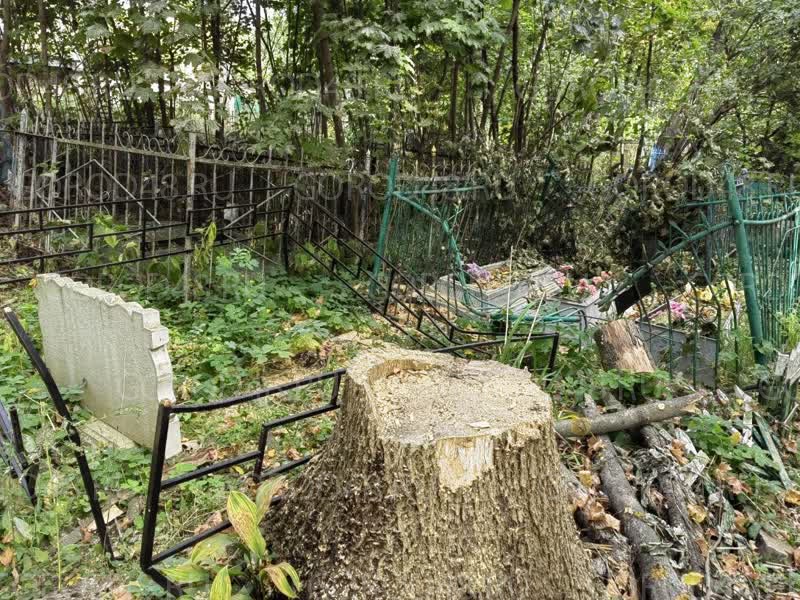 Ельчане жалуются на ситуацию на старом Казанском кладбище: при опиловке деревьев повредили ограды.