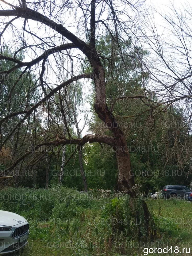 По словам горожан, с 2010 года во дворе стоят сухие деревья: три ясеня, клен и березы. Зимой 2025 года одна из берез упала и задела мужчину, который выгуливал собаку. В управлении главного смотрителя липчанам пообещали срубить опасные деревья в конце августа, но так и не срубили.
