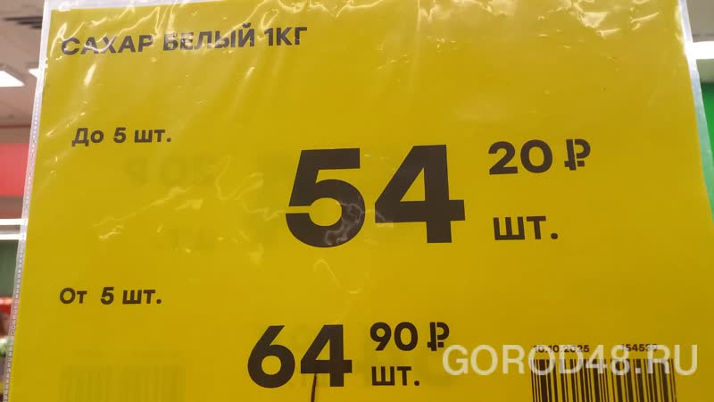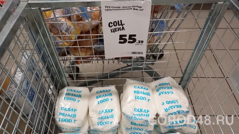 На этой неделе порадовали цены на сахар — они снижаются. В одном магазине мы обнаружили сахар по 55 рублей 39 копеек,