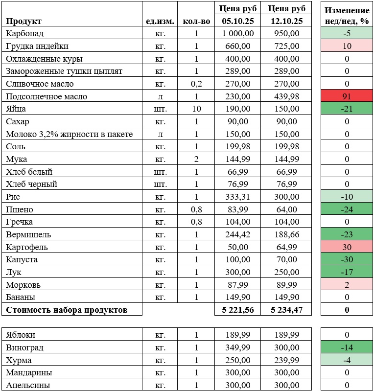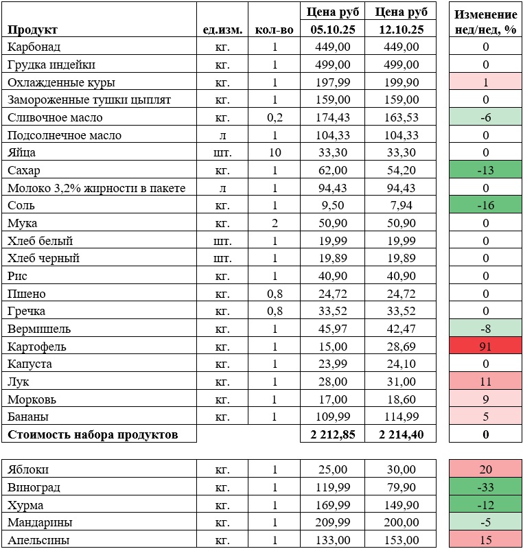 Корзина дорогих продуктов подорожала на 12 рублей 91 копейку.