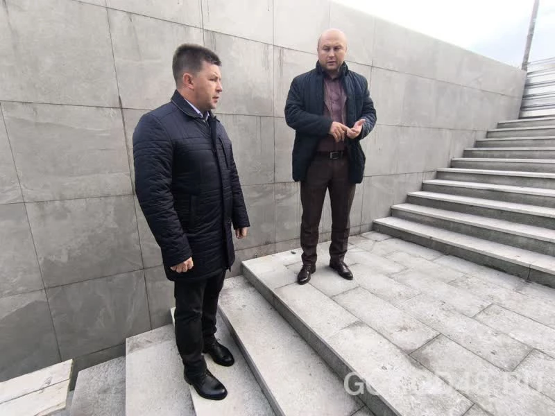 Все полученные ответы его удовлетворили. Например, облицовочная плитка уложена на специальный двухкомпонентный клей, похожий по крепости схватывания на эпоксидный. Мэра порадовало и то, что на бетонные отливки ступеней уложен тяжелый, специально термообработанный гранит с противоскользящим эффектом.