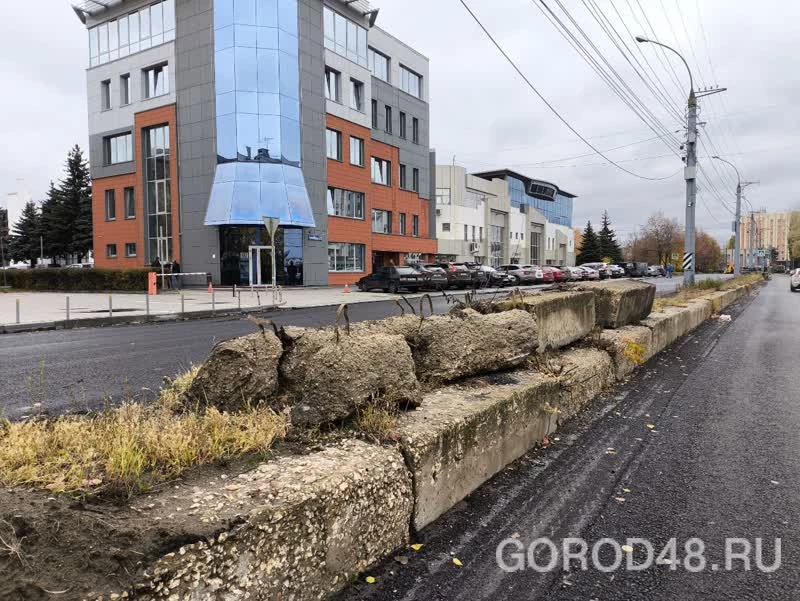 — Подпорная стена разделяет две дороги на Октябрьской, находящиеся в разных уровнях. Ее не заменить на бордюры, ведь стена держит грунт, по которому проходит главная дорога. Поэтому подрядчик оставил ее в нынешнем виде,— сказали GOROD48 в управлении главного смотрителя.