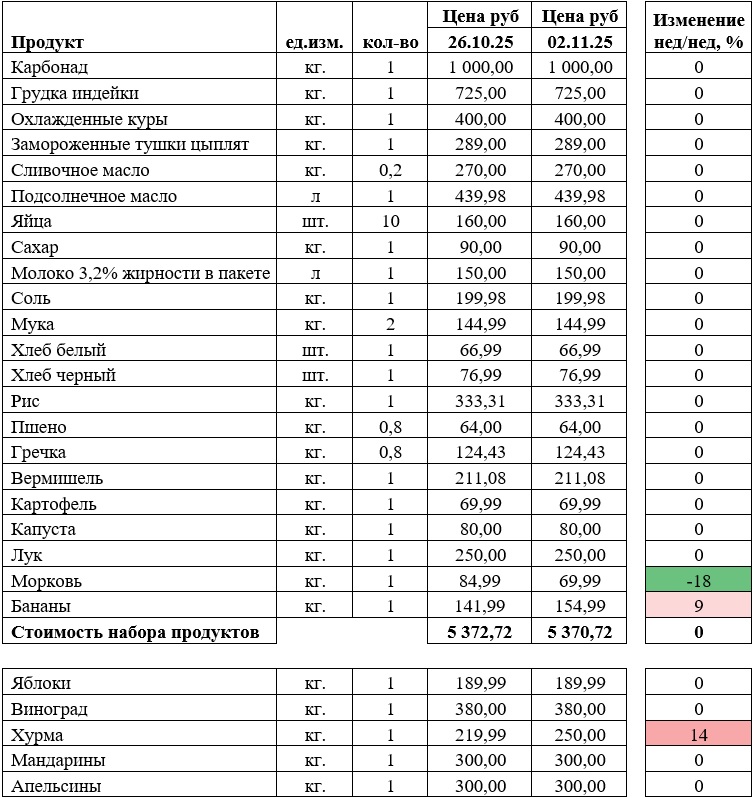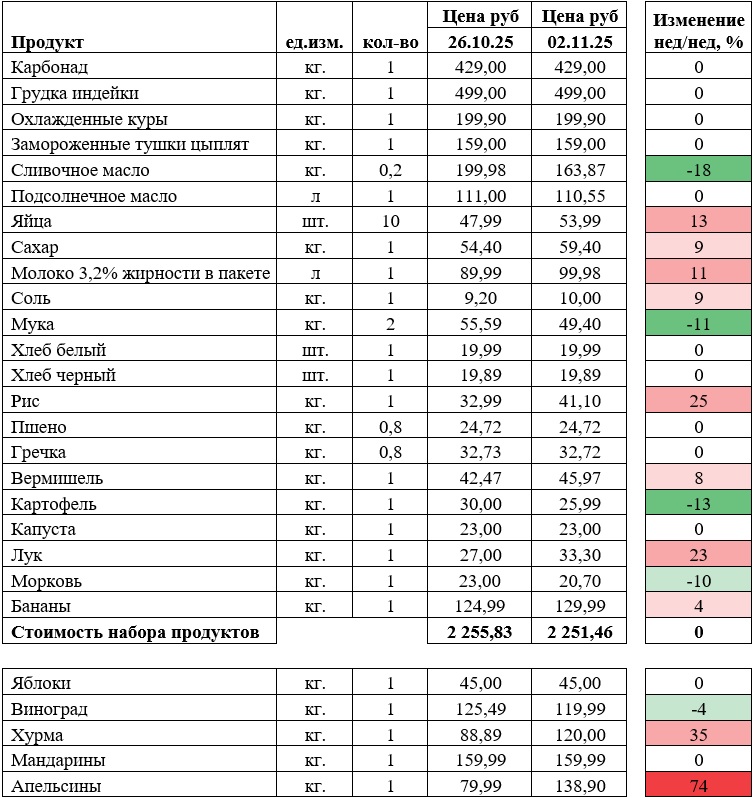 Корзина с дорогими продуктами тоже подешевела — на 2 рубля.