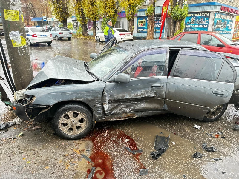 В Ельце столкнулись «Лада» и «Тойота», после чего иномарка врезалась в столб