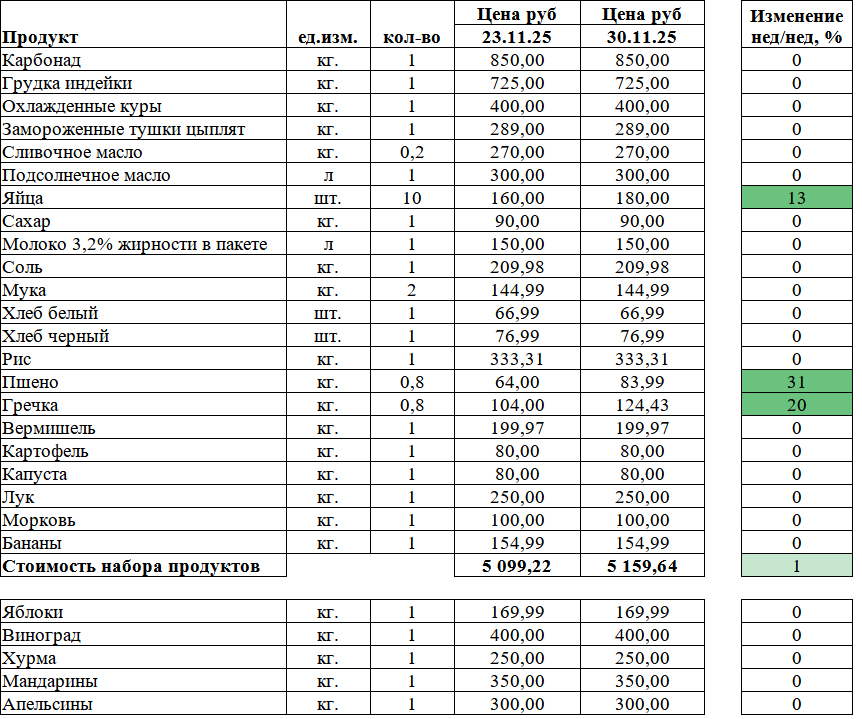 Наша дорогая корзина, напротив, выросла в цене на 60 рублей 42 копейки. В дорогом сегменте яйца подорожали, а на крупы закончились скидки.