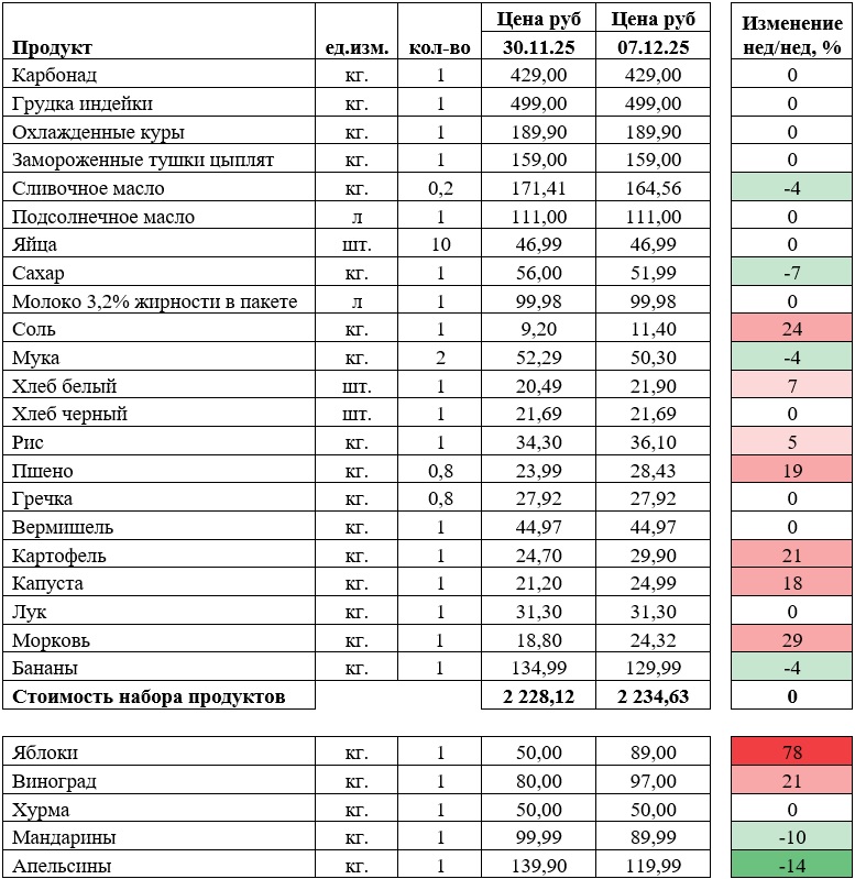 Итоги недели: цены.