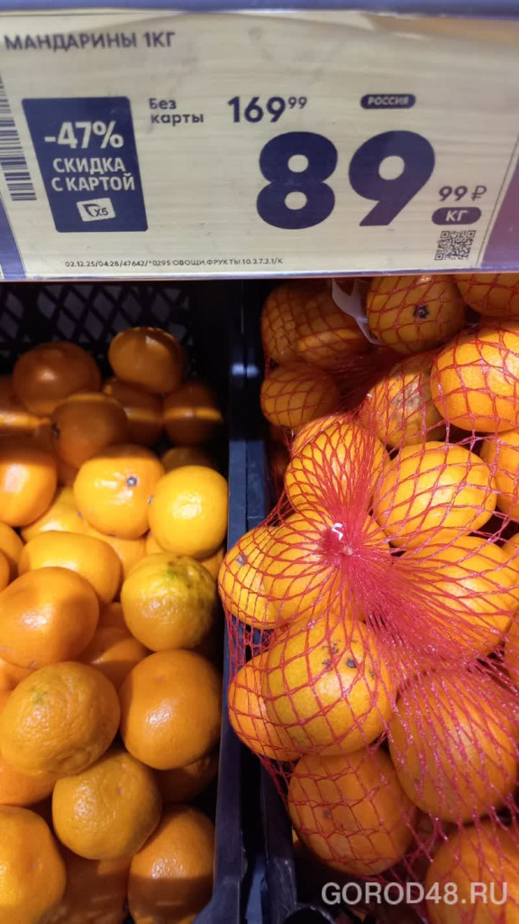 Падают цены и на мандарины. Килограмм продают уже по 89 рублей 99 копеек, правда, это цена со скидкой для держателей карт торговой сети.