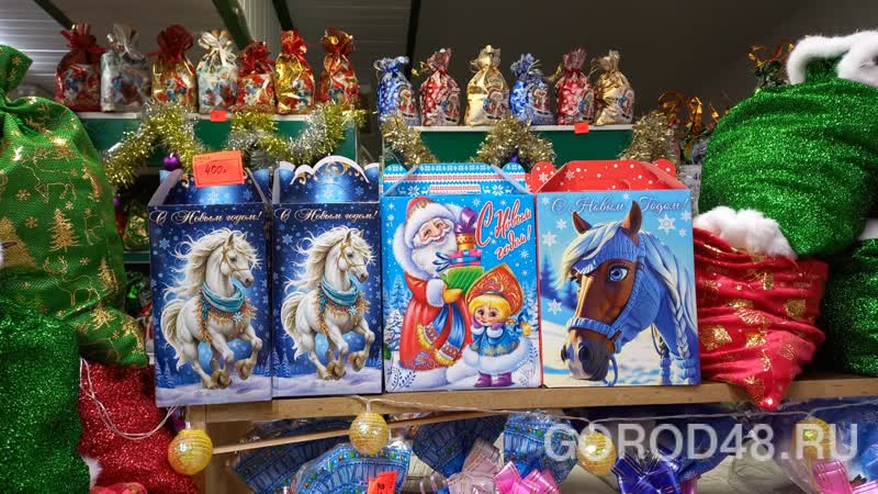 На Центральном рынке появились конфеты в новогодних упаковках с лошадьми — символом наступающего 2026 года. Но только картонные, сумочек и рюкзачков до сих пор нет, как уверяют продавцы — из-за дороговизны.