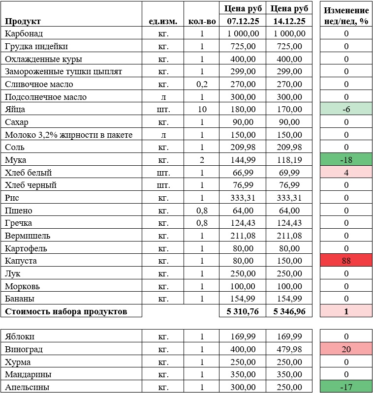 Корзина дорогих продуктов тоже выросла в цене, но меньше — на 36 рублей 20 копеек.