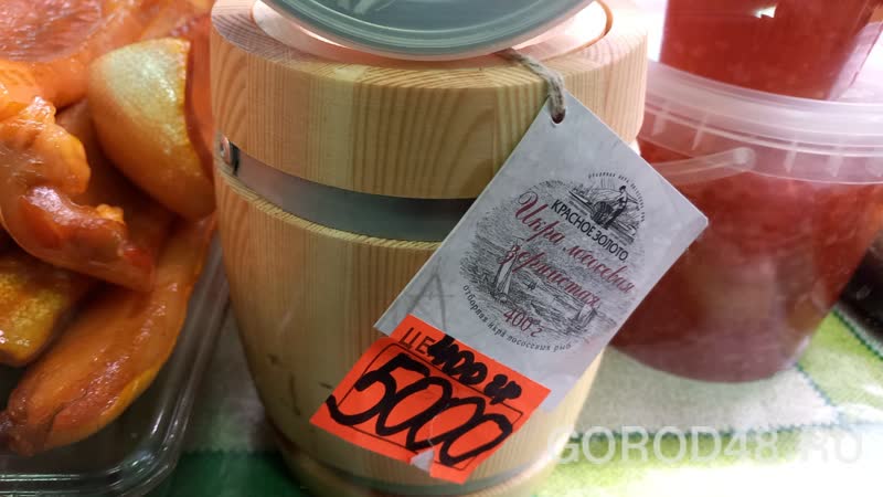На Центральном рынке мы обнаружили бочонок икры: 400 граммов за 5 000 рублей.