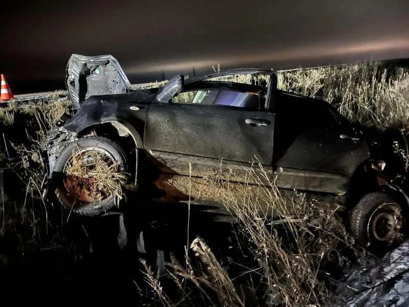 Автомобиль «Ниссан» улетел в кювет на дороге «Восточный обход». Водитель не справился с управлением.