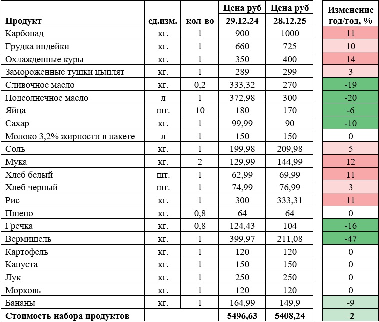 Надо отметить, что в прошлогоднем обзоре цен все было наоборот: в 2024 году наши корзины подорожали по сравнению с 2023 годом.