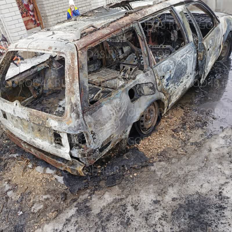 Машина выгорела полностью. Одна из версий пожара — короткое замыкание в проводке.