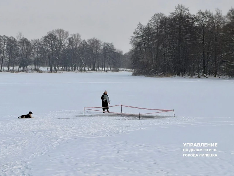 Прорубь огорожена сигнальной лентой, но липчан она не останавливает.