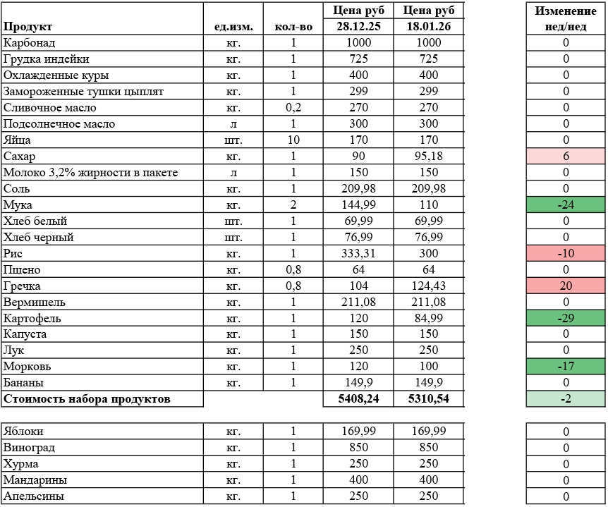 Дорогая корзина «похудела» еще больше — на 97 рублей 70 копеек.
