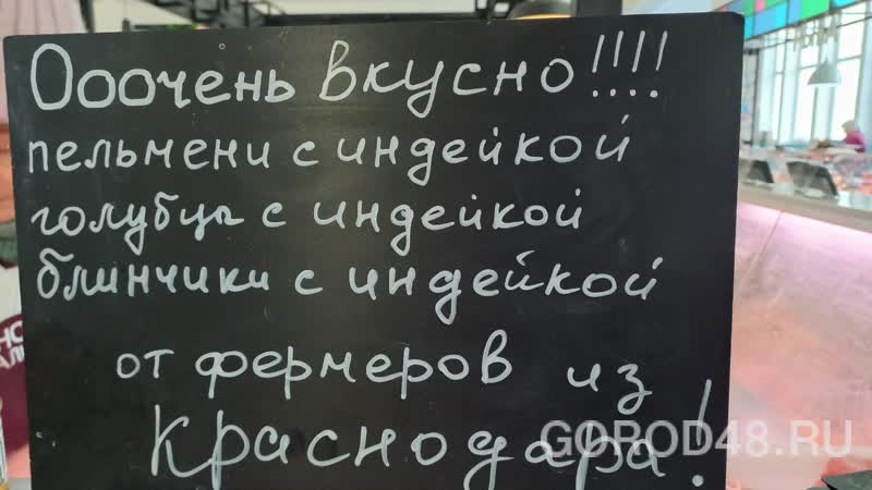 В мясных рядах тоже выложили самописную рекламу блюд с индейкой из Краснодара.