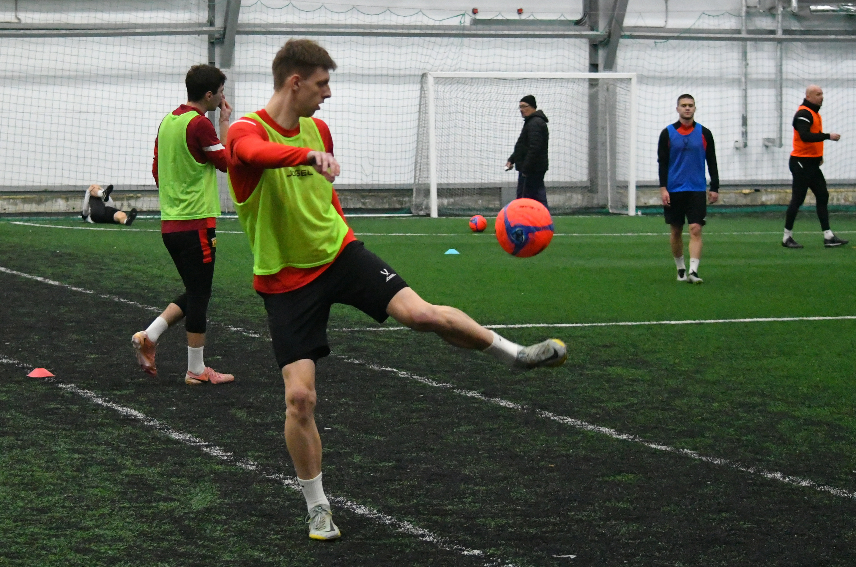 Из-за мороза и снегопада всю неделю подопечные Сергея Хрипункова проводили по одной тренировке в манеже и лишь ближе к вечеру занимались на свежем воздухе – на стадионе «Сокол». Сегодня там же должна была пройти двусторонняя игра, в которой тренеры планировали устроить «проверку боем» прибывшим на просмотр потенциальным новобранцем, но поле замело так, что сыграть на нём не было возможности.