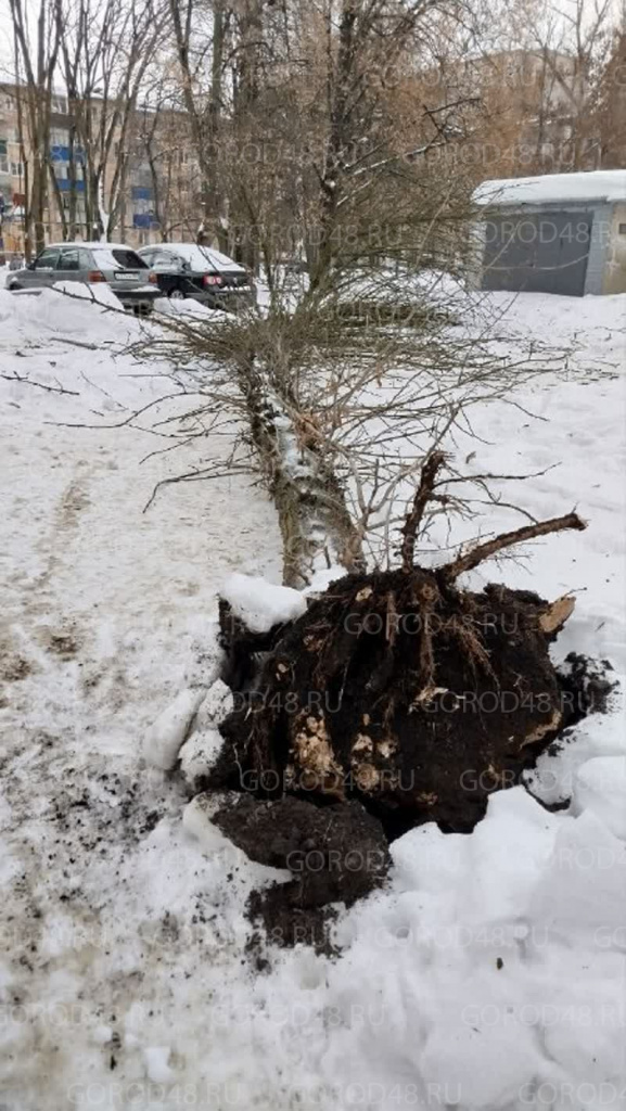 Как рассказали GOROD48 местные жители, такое произошло не в первый раз: прошлой осенью по соседству другое дерево упало на автомобиль. Упавшие стволы давно засохли, а рядом — еще пять таких.