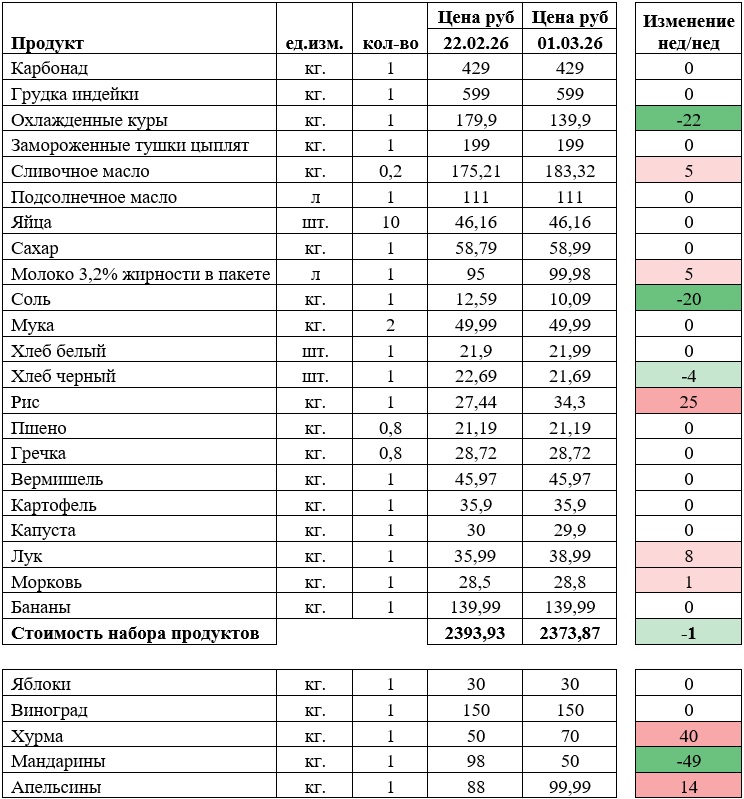 Наша дорогая корзина тоже подешевела — на 97 рублей 29 копеек: за счет лука.