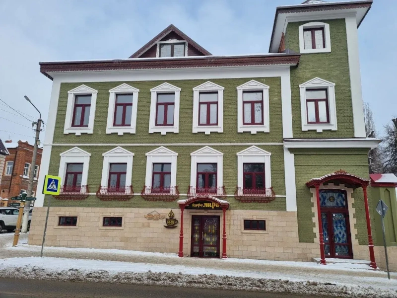 Владелица здания заменила в нем кровлю, покрасила фасады в зеленый цвет и облицевала цоколь.