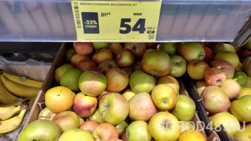 Порадовали цены на яблоки в одном из магазинов. Вполне приличные предлагали по 54 рубля 99 копеек за килограмм, правда, с учетом 33% скидки.