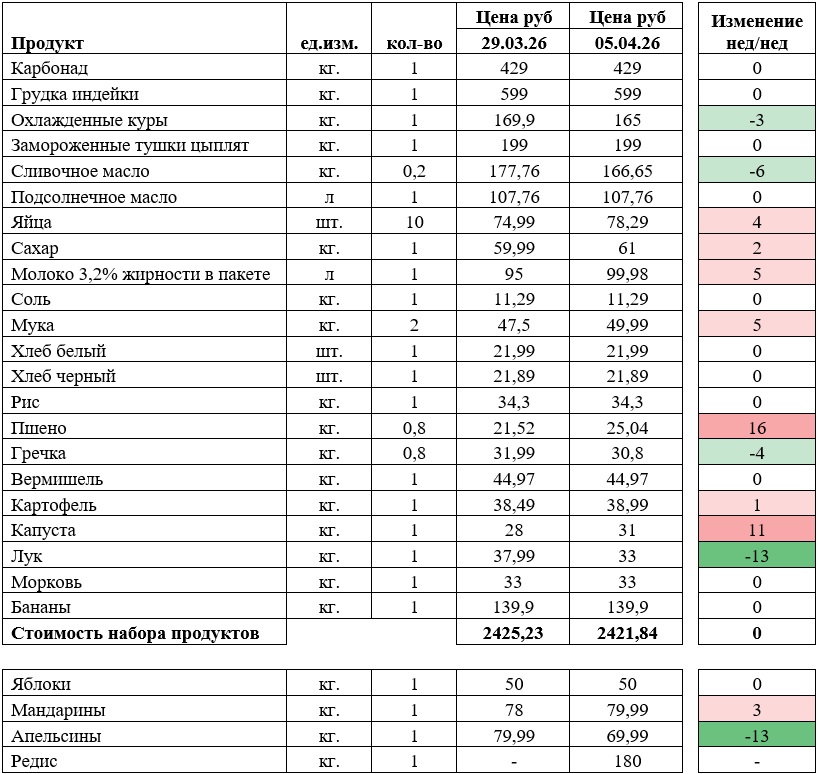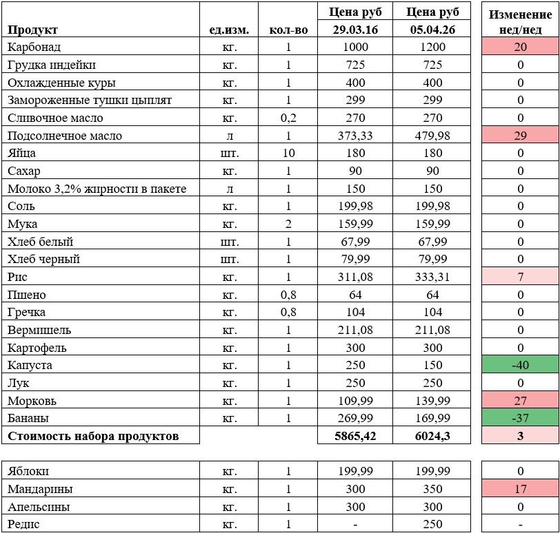 Зато цена набора дорогих продуктов выросла на 158 рублей 88 копеек. Вновь появилось дорогое подсолнечное масло и подорожала свинина.