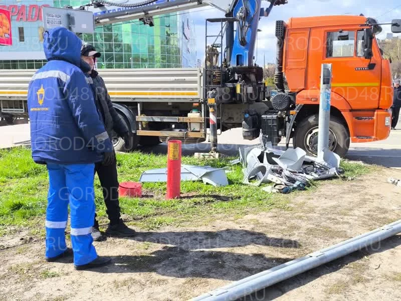 Напомним, конструкция не выдержала нагрузки от порывов ветра. На перекрестке уже работает бригада «Липецкгорсвета», она восстанавливает светофор.