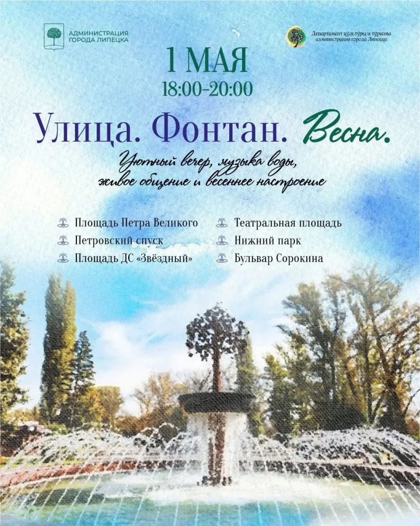 И обратите внимание, 1 мая в 18:00 запустят фонтаны.