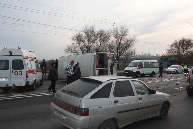 На Октябрьском мосту после аварии перевернулась маршрутка: 7 человек в больнице