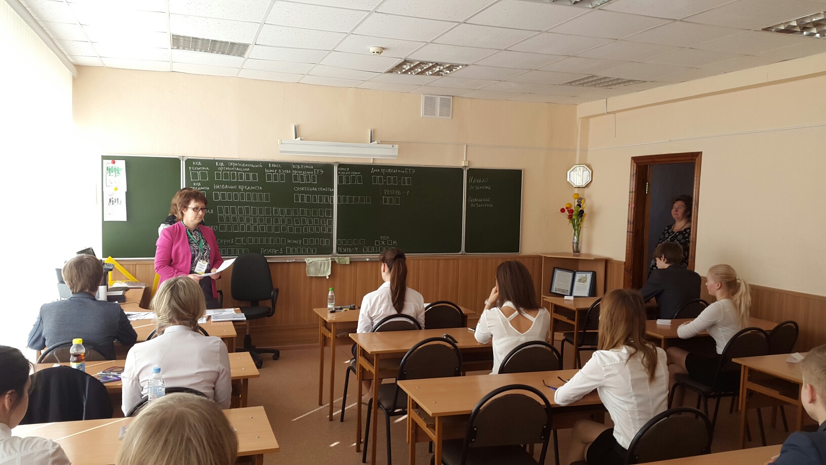 Репетиция в школе №12 проходит только в части самой сдачи экзамена ребятами. Учебное учреждение не является пунктом для сдачи ЕГЭ, поэтому в классах камеры за школьниками не наблюдают. Вопрос безопасности и объективности сдачи - также одно из новшеств ЕГЭ-2015.
