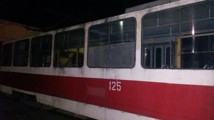 Трамвай около часа простоял на месте обстрела, парализовав движение по маршруту.