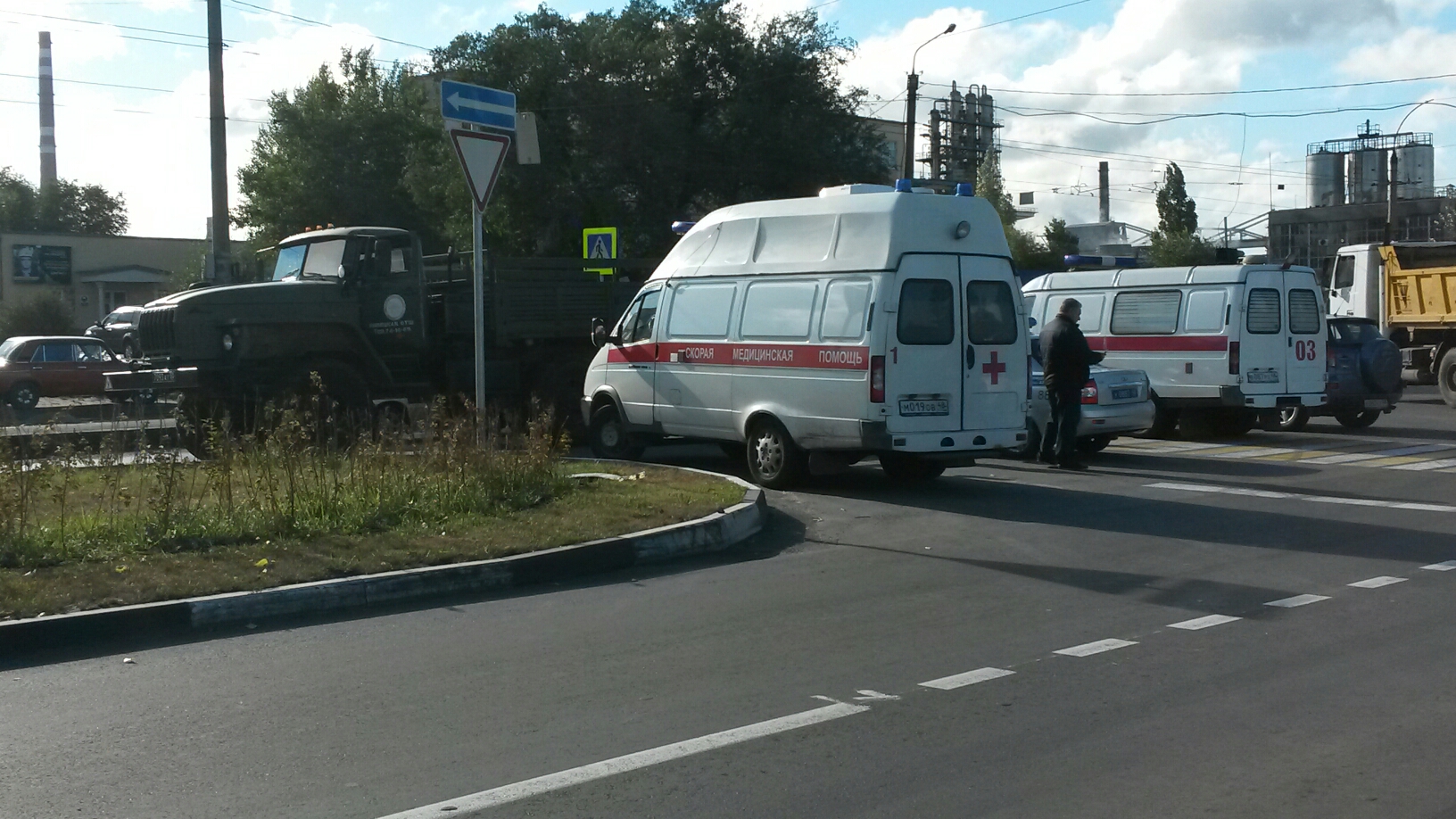 Авария произошла рядом с пешеходным переходом. По словам очевидцев происшествия, мужчина выбежал на дорогу из-за автобуса, инструктор, сидевший за рулем "Урала" заметил пешехода и успел нажать на тормоз, но избежать наезда ему не удалось.