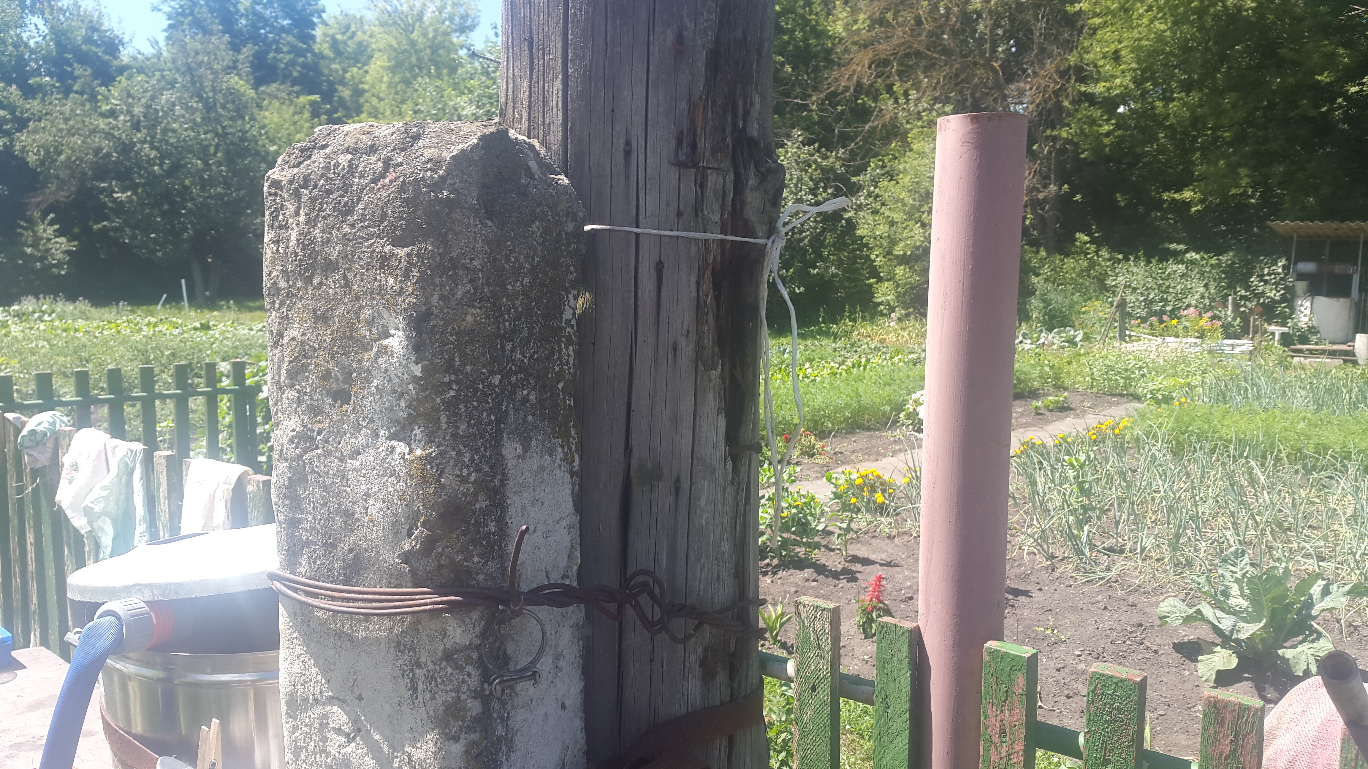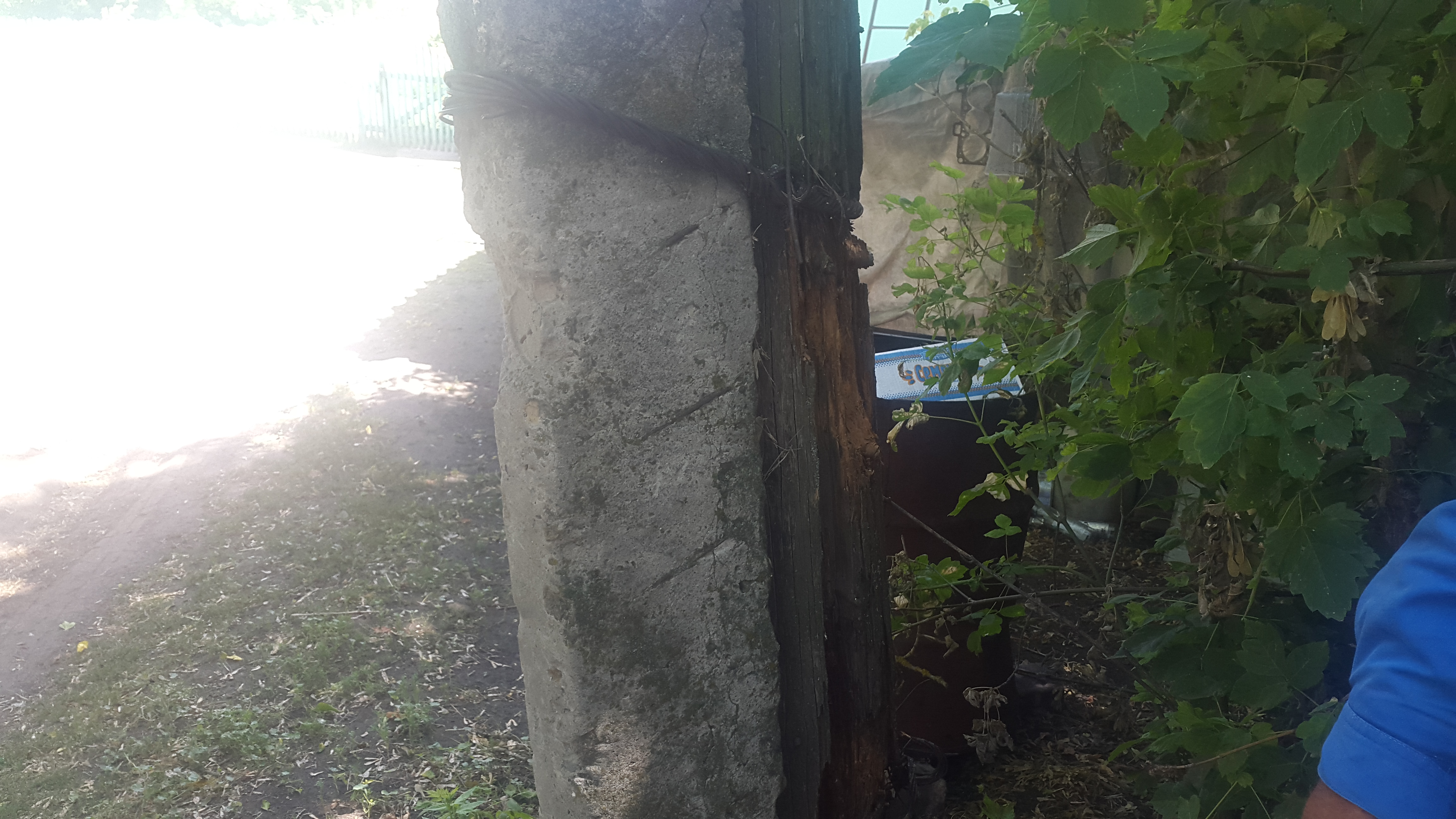 Понять монтажника можно: столбы электропередач, кажется, видели еще ту самую лампочку Ильича. От старости и заброшенности опоры превратились в памятник попустительству. Сухие и трухлявые столбы рискуют рухнуть от любого мало-мальски значимого ветра. Кроме того, после последней бури опоры закрепили ... проволокой. А один из самых опасных столбов подвязали к дышащему на ладан дереву. Сейчас вся эта паутина коммуникаций угрожает свалиться прямо на голову местных жителей. Во время очередного налета стихии эффектом домино угрожает сложиться несколько деревьев, за ними - столбы, за ними - короткое замыкание на крышах жилых и хозяйственных строений.