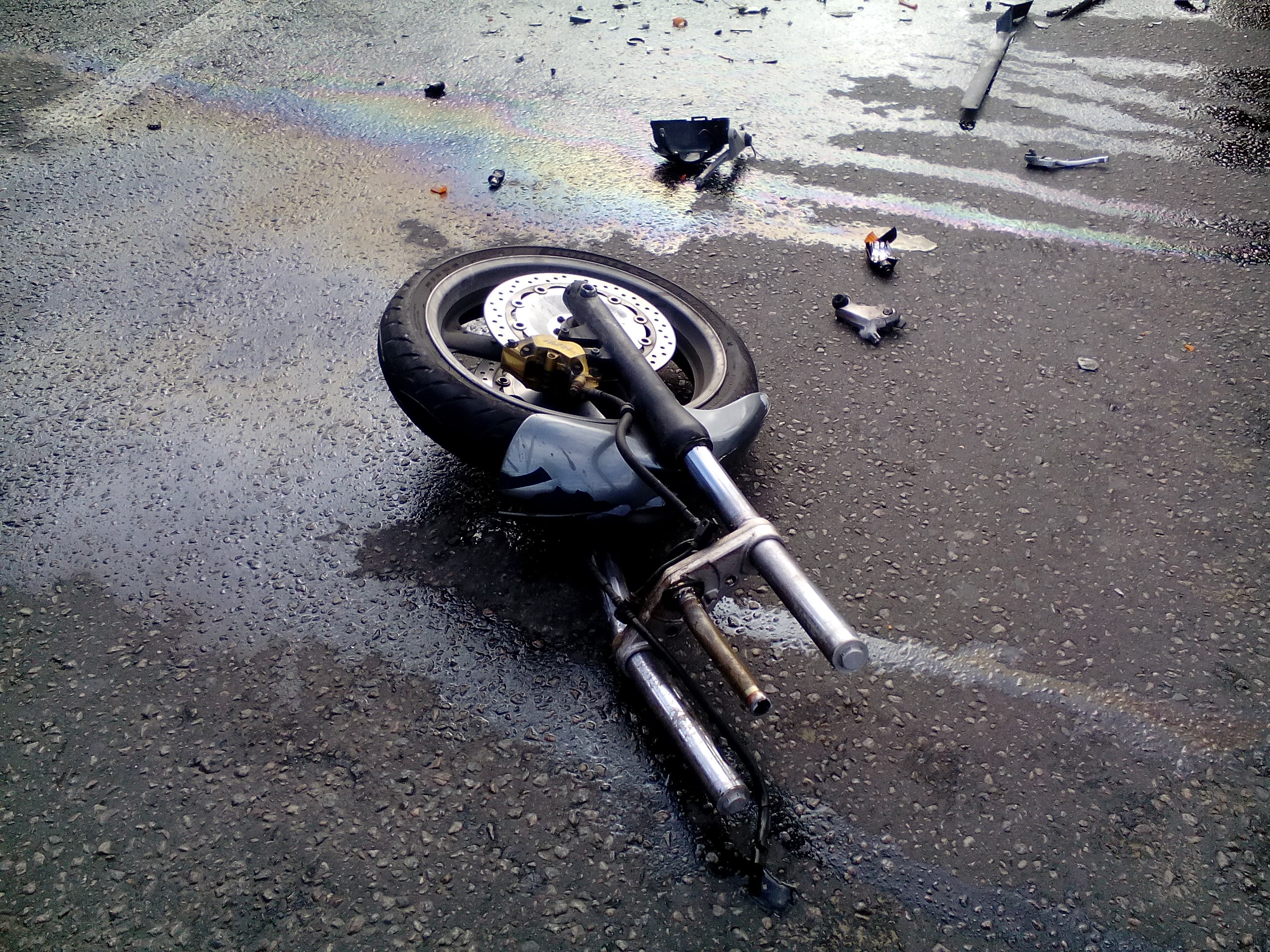 В Липецке мотоцикл после столкновения с легковушкой разорвало пополам