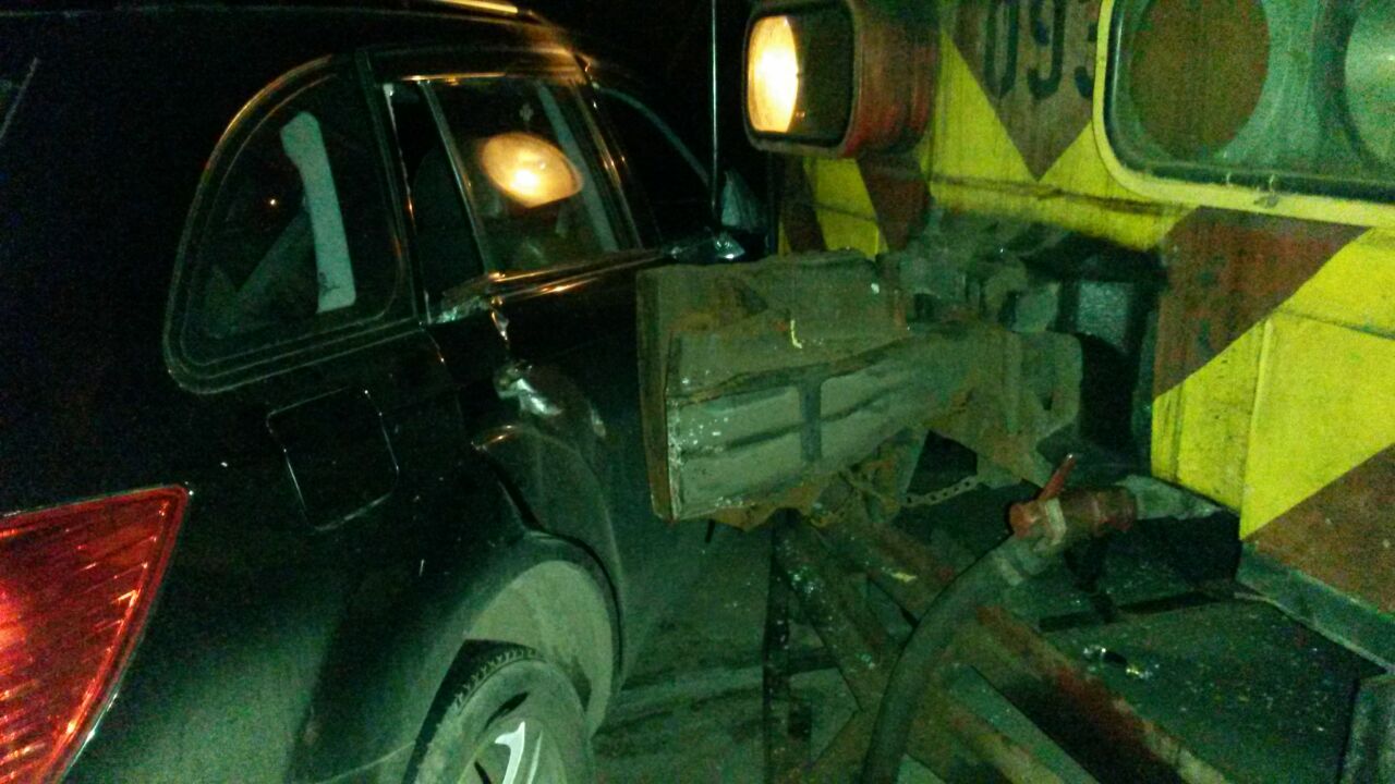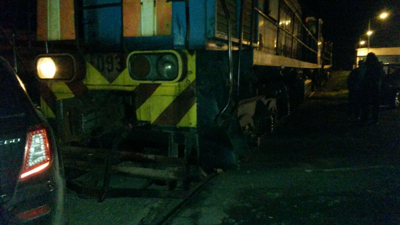 В Липецке локомотив врезался в легковушку и перекрыл дорогу