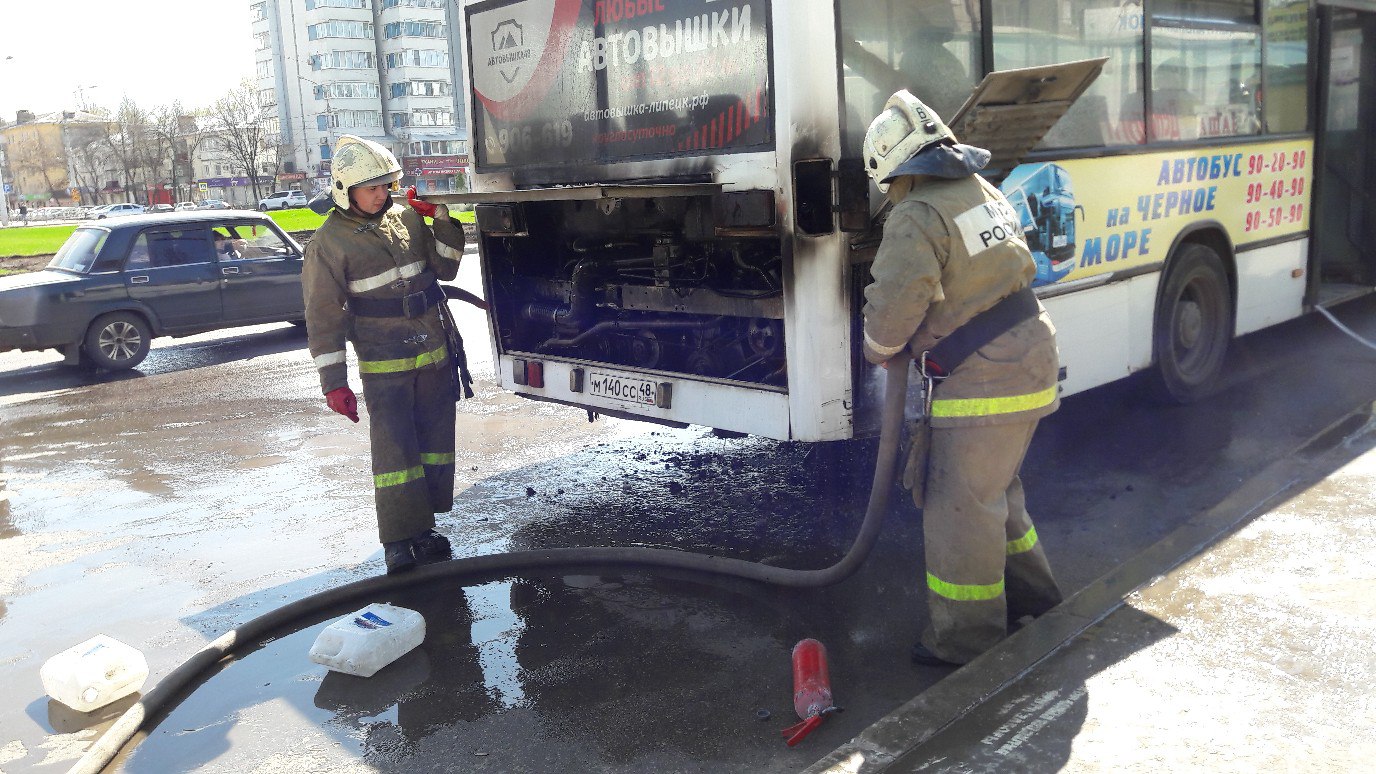 Как рассказал GOROD48 водитель автобуса, дым в салоне он заметил уже подъезжая к остановке. О дыме начали сообщать и пассажиры. На остановке водитель высадил пассажиров и начал заливать мотор имеющимся огнетушителем. К нему на помощь подоспели полицейские, оказавшиеся неподалеку. Они тоже начали тушить автобус огнетушителями из своей патрульно-постовой машины. Затем подъехала вторая полицейская машина и сотрудники ППС присоединились к коллегам, израсходовав огнетушители находившиеся в салоне.