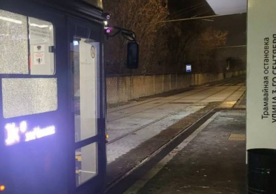 Разбиты стекла вагона. Пассажиры не пострадали.