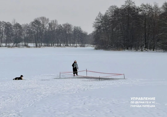 Прорубь огорожена сигнальной лентой, но липчан она не останавливает.