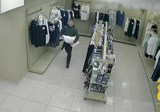 Кражу записала камера наблюдения. 20-летний парень просто вышел из магазина с охапкой одежды.
