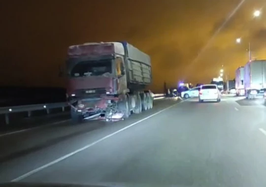 После столкновения броневик снес дорожное ограждение и въехал на тротуар.