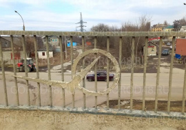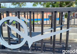 На виадук привезли первые секции забора с символами моста.
