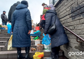 Продавцы грибов против сотрудников городского управления потребительского рынка.