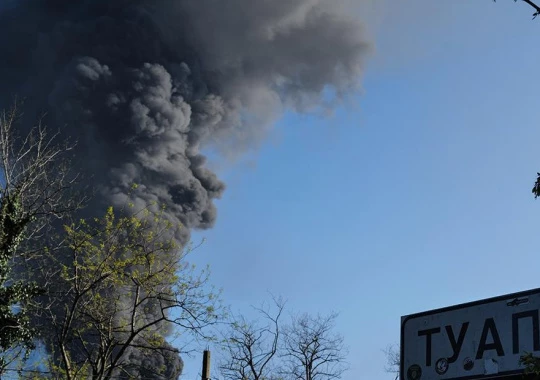Пожар на нефтеперерабатывающем заводе (НПЗ) вспыхнул в Туапсе в результате падения обломков беспилотных летательных аппаратов (БПЛА).