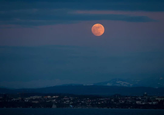 Прошлой ночью россияне могли наблюдали редкостное астрономическое явление — «розовая» Луна.